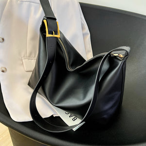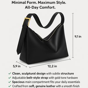 Sleek, structured, and effortlessly cool — Clare’s Modern Belt-Strap Shoulder Bag is made for confident minimalists. Its sculpted silhouette, wide belt-style strap, and gleaming zip closure give it a polished, contemporary edge. The soft leather surface and spacious interior make it as practical as it is chic.